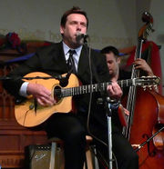 Gypsy jazz (also known as gypsy swing or hot club jazz) is a style of jazz music often said to have been started by guitarist Jean "Django" Reinhardt in the 1930s.[1] Because its origins are largely in France it is often called by the French name, "jazz manouche", or alternatively, "manouche jazz", even in English language sources.[2] Django was foremost among a group of Gypsy guitarists working in and around Paris in the 1930s through the 1950s, a group which also included the brothers Baro, Sarane, and Matelo Ferret and Reinhardt's brother Joseph "Nin-Nin" Reinhardt.[3]